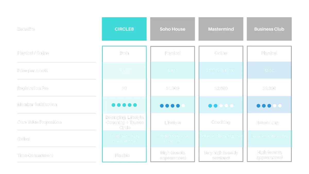 Membership in Circle8 costs only $330 per month, with no registration fee and no hidden costs.